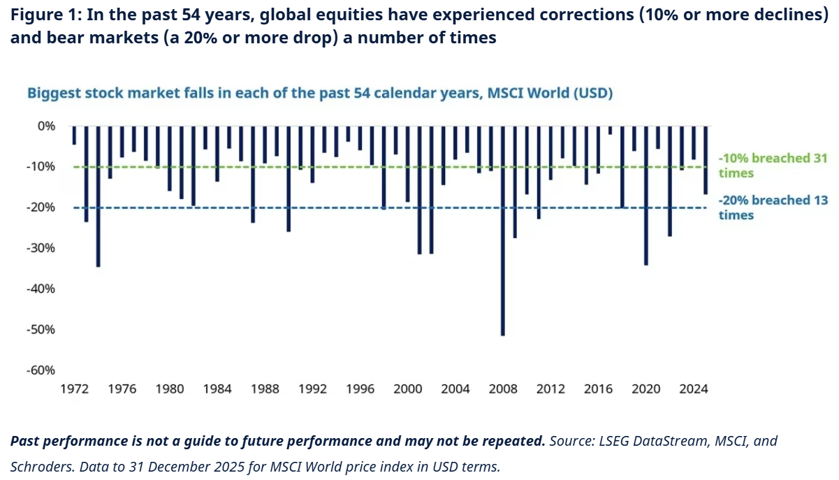 Market drops can feel dramatic in the moment but zoom out and you’ll find they are actually surprisingly common.